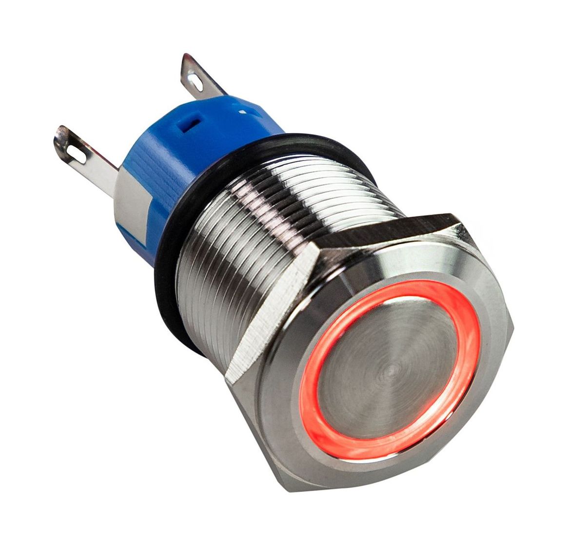 Кнопка без фиксации 12 В 5А, OFF-(ON) 5P, D19 красная подсветка