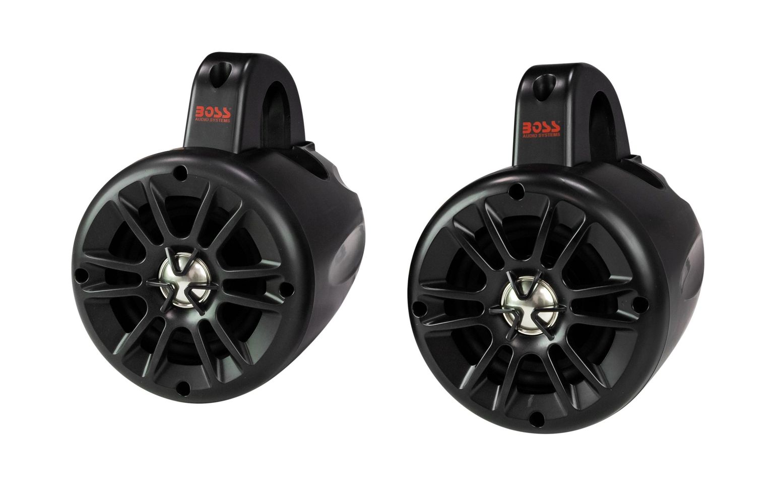 Две Колонки с 2-полосными влагозащищенными 4-дюймовые динамиками с 1-дюймовыми твитерами и светодиодной подсветкой