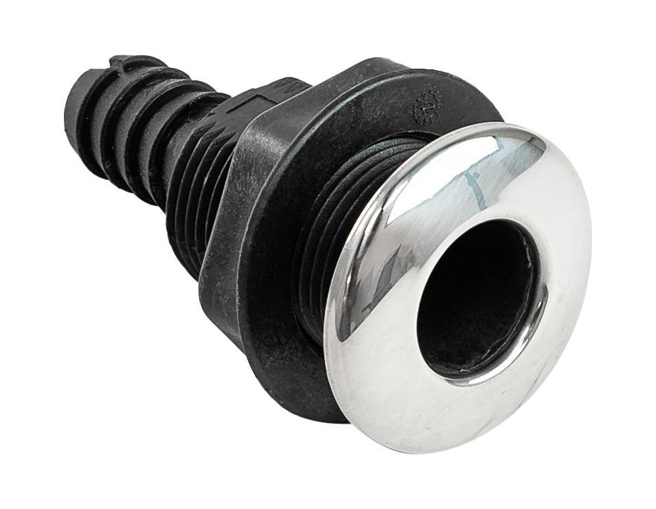 Разъем водосброса пластиковый с крышкой из нержавеющей стали под шланг 16 мм, черный
