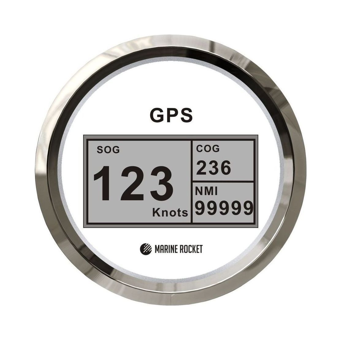 GPS-спидометр электронный, белый циферблат, нержавеющий ободок, выносная антенна, д. 85 мм, Marine Rocket