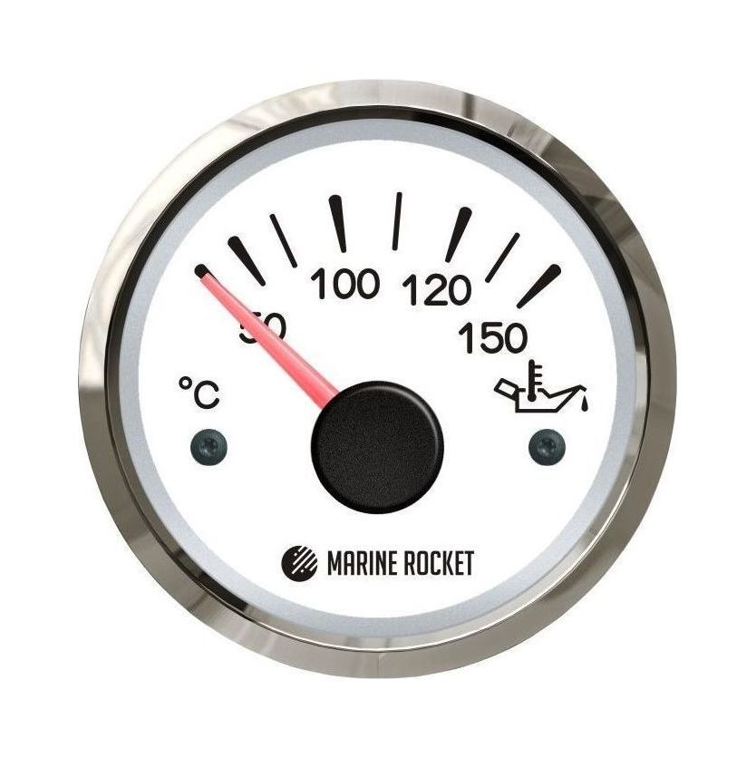 Указатель температуры масла 50-150 гр., белый циферблат, нержавеющий ободок, д. 52 мм, Marine Rocket