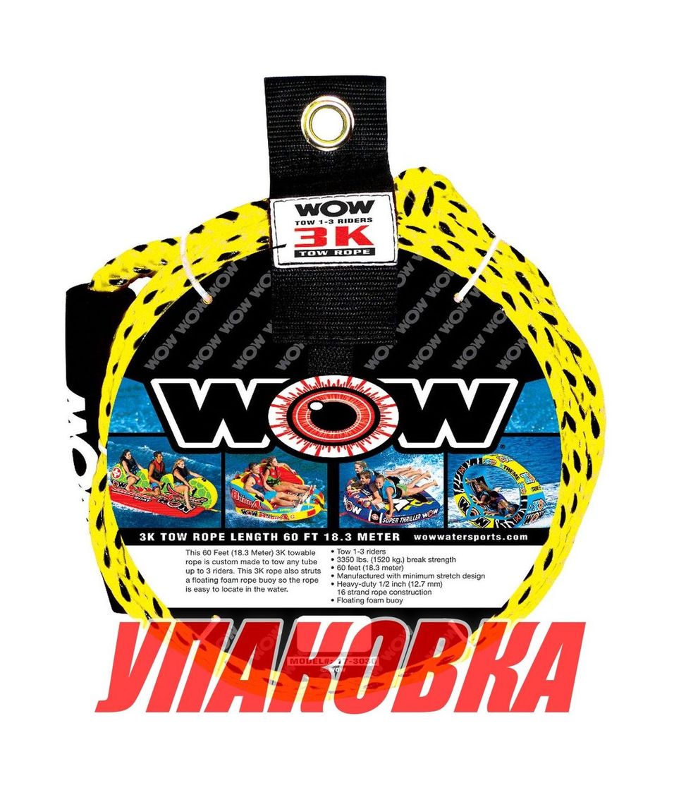 Фал буксировочный для буксируемых кругов, с поплавком, 3 пассажира, 18 м (упаковка из 10 шт.)
