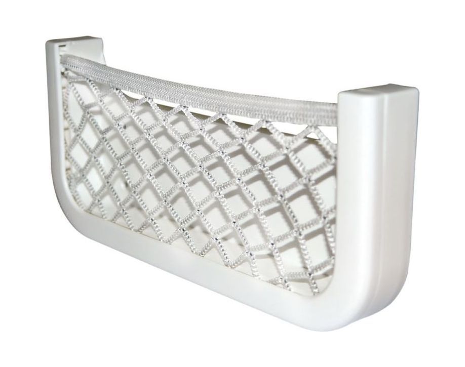 Рама из белого АБС-пластика с эластичной сеткой из плетеного нейлона. Крепится на самоклеющуюся тыльную часть либо посредством четрырех шурупов.