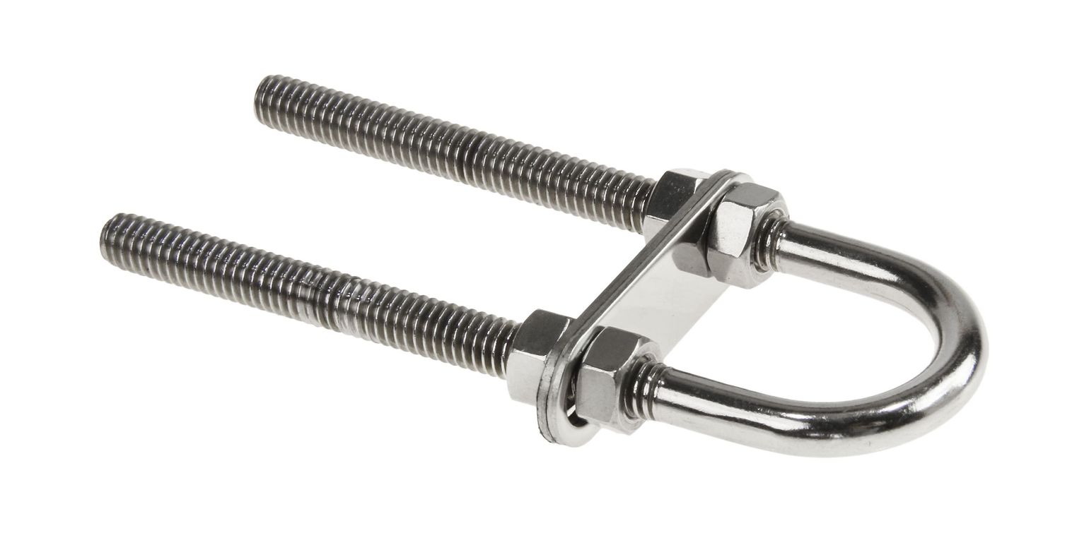 Рым-болт U-образный применяется для крепления цепей, тросов, веревок. Предназначен для подъема грузов во время такелажных работ. Выполнен из нержавеющей стали.
