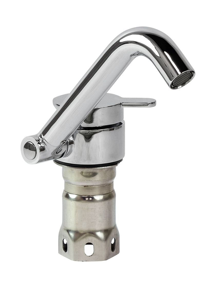 Низкопрофильный складной кран-смеситель для горячей и холодной воды — идеальное решение для катера, яхты, дома на колёсах. Отлично подходит для установки на большинство раковин, поворачивается на 360º: это практично и компактно. Кран из хромированной меди с ручкой однорычажного типа элегантно выглядит и занимает минимум места.